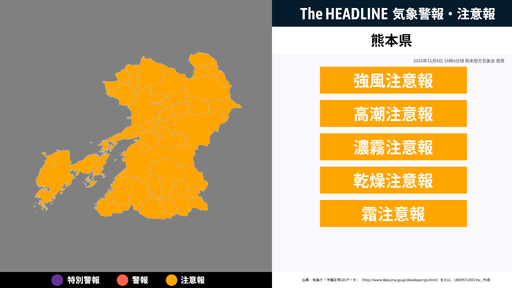 11月6日16時6分頃、熊本県の強風注意報・高潮注意報などが更新