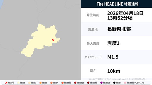 4月18日13時52分頃、長野県で最大震度1の地震を観測