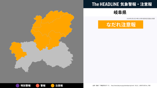 2月22日4時11分頃、岐阜県のなだれ注意報が更新
