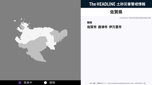8月11日18時0分、佐賀県の土砂災害警戒情報が解除された