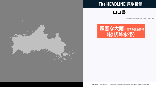 山口県西部、線状降水帯による非常に激しい雨が続き災害発生の危険度が急激に高まる