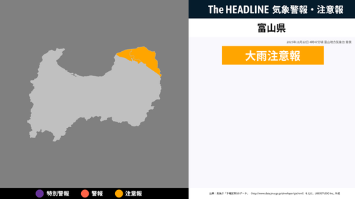 11月22日4時47分頃、富山県に大雨注意報が発表