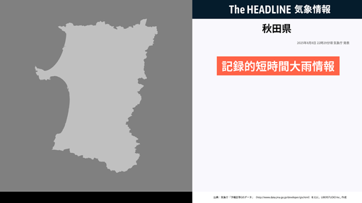 8月8日22時29分、秋田県の記録的短時間大雨情報が更新