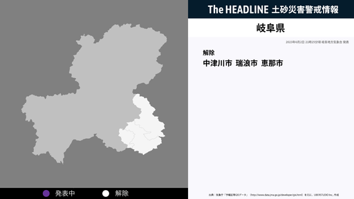 6月2日21時25分、岐阜県の土砂災害警戒情報が解除された