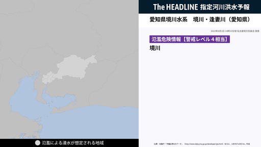 愛知県境川水系 境川・逢妻川(愛知県)が氾濫危険水位に到達して、氾濫する危険性