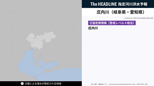 庄内川(岐阜県・愛知県)が氾濫危険水位に到達して、氾濫する危険性
