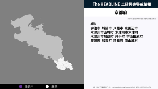 6月2日14時30分、京都府の土砂災害警戒情報が解除された