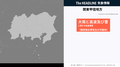 関東甲信地方、2日夜から3日午前中にかけて線状降水帯および大雨災害の危険性