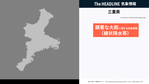 三重県南部、線状降水帯による非常に激しい雨が続き災害発生の危険度が急激に高まる