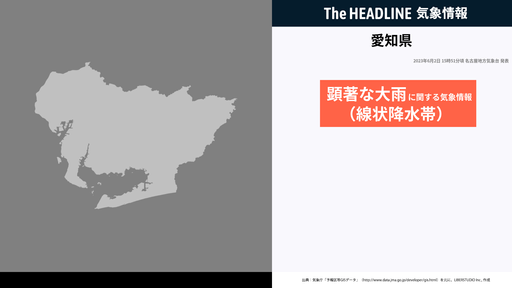 愛知県東部、線状降水帯による非常に激しい雨が続き災害発生の危険度が急激に高まる
