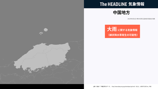 中国地方、2日午前中から午後にかけて線状降水帯および大雨災害の危険性