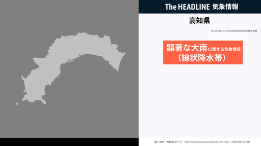 高知県西部、線状降水帯による非常に激しい雨が続き災害発生の危険度が急激に高まる