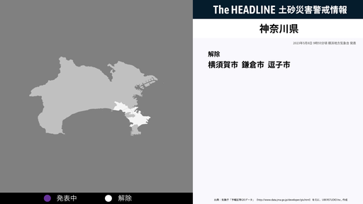 5月8日9時55分、神奈川県の土砂災害警戒情報が解除された