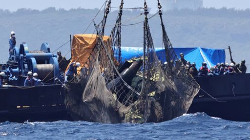 陸自ヘリ事故、機体引き揚げ=ネットで包み海上に―分析し、原因究明・沖縄