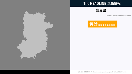 11月24日16時10分、奈良地方気象台は、警報・注意報に先立ち注意・警戒を呼びかけるため奈良県に黄砂に関する気象情報を発表した。奈良地方気象台の発表内容奈良県では、25日から26日にかけて黄砂...