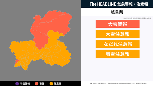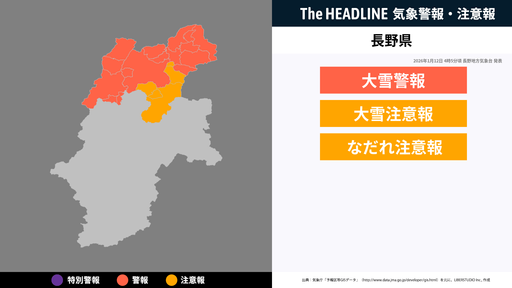 1月11日6時7分、前橋地方気象台は、群馬県に発表されている警報・注意報の経過、予測、防災上の留意点などを解説するために発表していた気象情報を更新した。前橋地方気象台の発表内容北部の山地では、1...