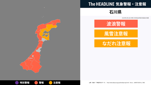 1月11日6時6分、福井地方気象台は、福井県に発表されている警報・注意報の経過、予測、防災上の留意点などを解説するために発表していた気象情報を更新した。福井地方気象台の発表内容福井県では、12日...