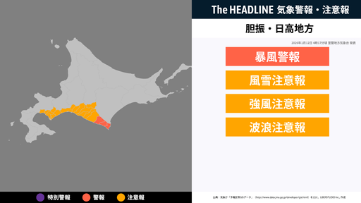 1月11日6時40分、函館地方気象台は、渡島・檜山地方に発表されている警報・注意報の経過、予測、防災上の留意点などを解説するために発表していた気象情報を更新した。函館地方気象台の発表内容檜山奥尻...