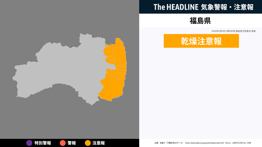 3月9日4時8分頃、福島県の乾燥注意報が更新