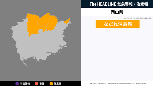 2月28日15時45分頃、岡山県のなだれ注意報が更新