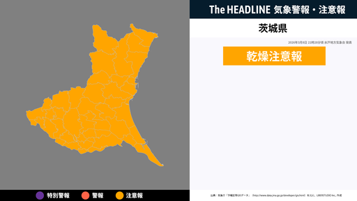 3月8日21時28分頃、茨城県に乾燥注意報が発表
