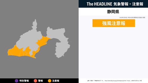 3月8日7時24分頃、静岡県に強風注意報が発表