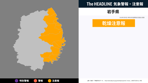 3月9日4時5分頃、岩手県に乾燥注意報が発表