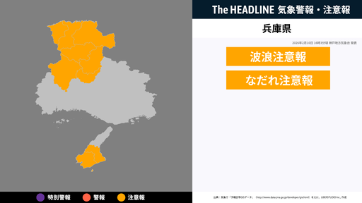 2月10日16時3分頃、兵庫県に波浪注意報・なだれ注意報が発表