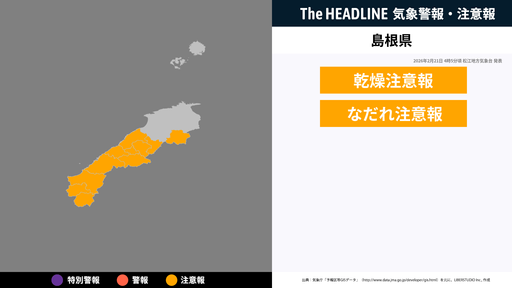 2月21日16時1分、松江地方気象台は、島根県に発表されている警報・注意報の経過、予測、防災上の留意点などを解説するために突風と落雷に関する気象情報を発表した。松江地方気象台の発表内容島根県では...