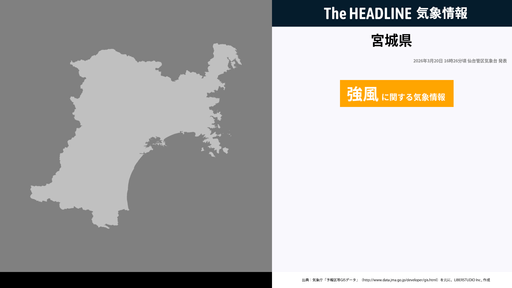 3月20日16時26分、仙台管区気象台は、宮城県に発表されている警報・注意報の経過、予測、防災上の留意点などを解説するために強風に関する気象情報を発表した。仙台管区気象台の発表内容東部の陸上では...