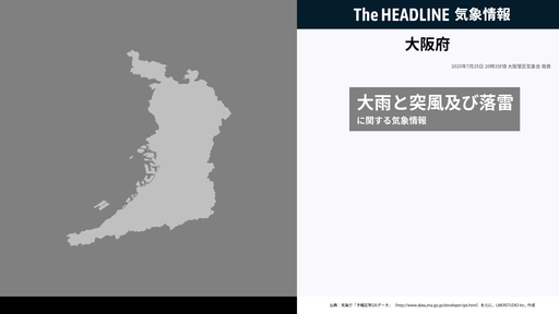 7月25日20時3分、大阪管区気象台は、警報・注意報に先立ち注意・警戒を呼びかけるため大阪府に発表していた気象情報を更新した。大阪管区気象台の発表内容大阪府では、警報級の大雨となる可能性や竜巻な...