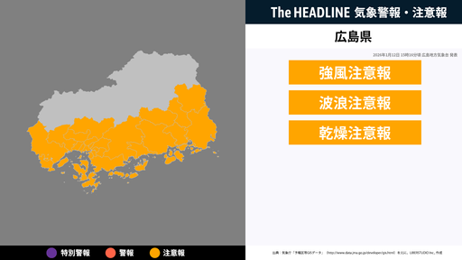 1月12日5時32分、盛岡地方気象台は、岩手県に発表されている警報・注意報の経過、予測、防災上の留意点などを解説するために発表していた気象情報を更新した。盛岡地方気象台の発表内容岩手県では、強い...