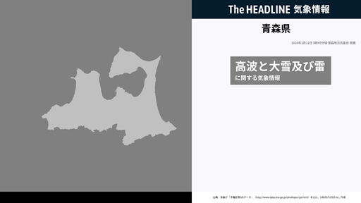 1月12日5時45分、青森地方気象台は、青森県に発表されている警報・注意報の経過、予測、防災上の留意点などを解説するために発表していた気象情報を更新した。青森地方気象台の発表内容津軽の外海では、...