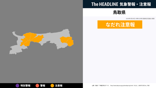 3月20日15時31分頃、鳥取県のなだれ注意報が更新