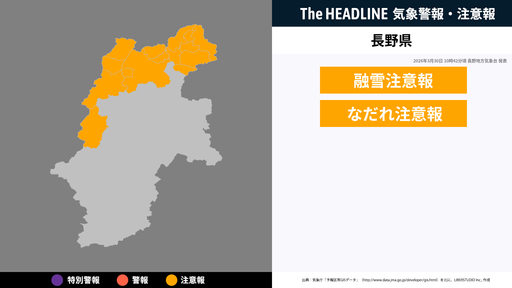 3月30日10時42分頃、長野県に融雪注意報・なだれ注意報が発表