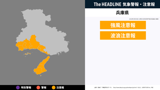 3月30日10時15分頃、兵庫県に強風注意報・波浪注意報が発表